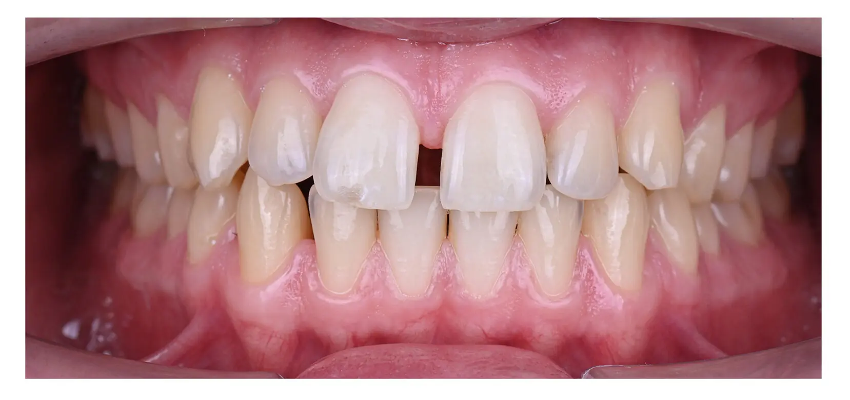 A diastema is a medical term that means the presence of a gap between two or more teeth. This condition occurs in both young and older people and can develop between any teeth. The midline diastema is the most common type and specifically refers to the gap between the two upper front teeth.